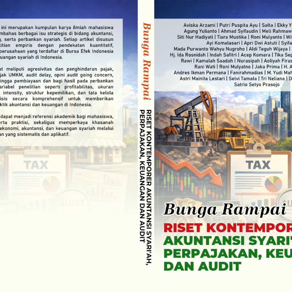 Buku bunga rampai ini merupakan kumpulan karya ilmiah mahasiswa dan dosen yang membahas berbagai isu strategis di bidang akuntansi, perpajakan, auditing, serta perbankan syariah. Setiap artikel disusun berdasarkan penelitian empiris dengan pendekatan kuantitatif, menggunakan data perusahaan yang terdaftar di Bursa Efek Indonesia maupun lembaga keuangan syariah di Indonesia.